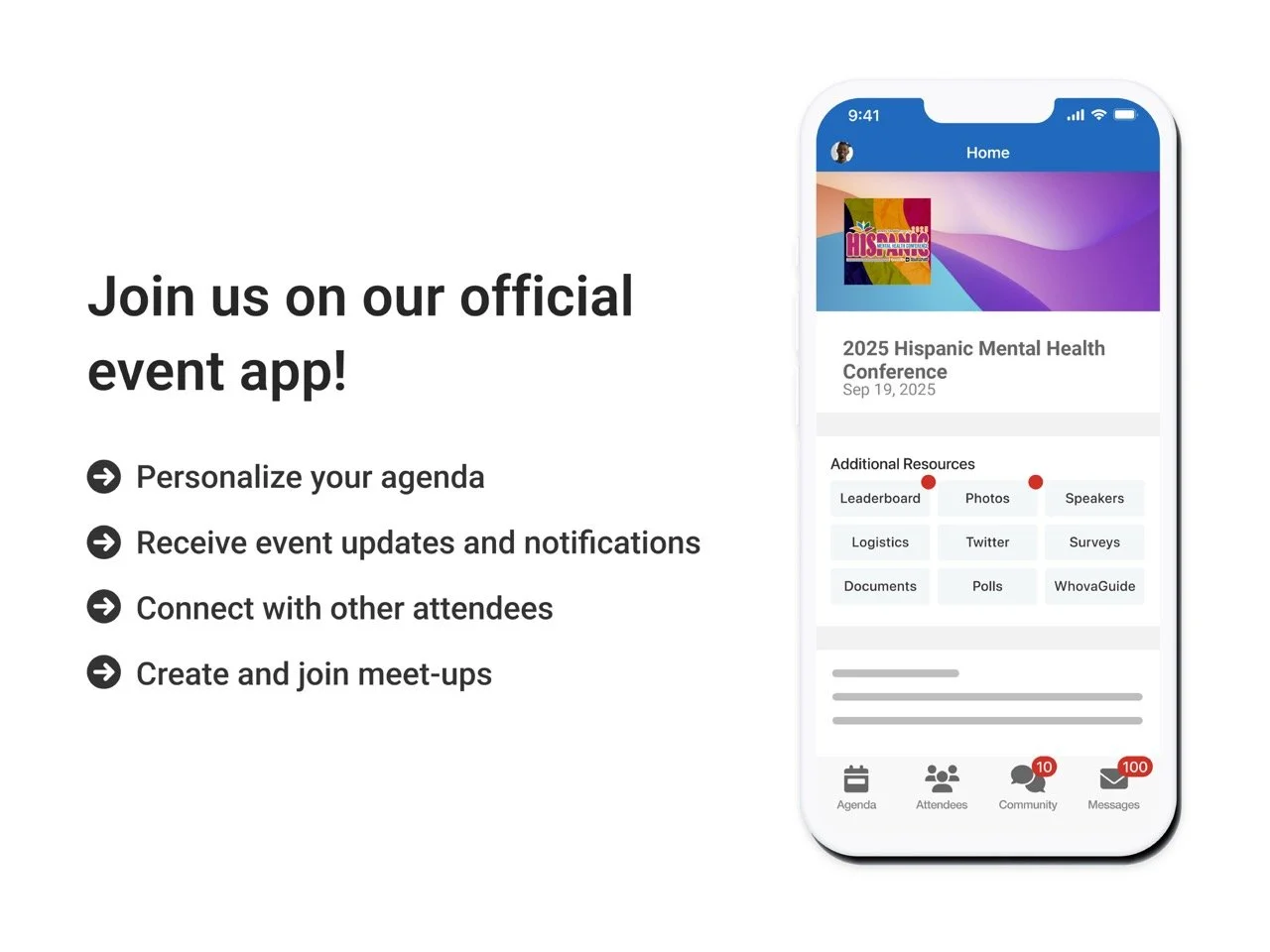 The conference offers attendees opportunities to learn about the latest trends in issues and services, share experiences, and build community through relevant keynote speakers, breakout sessions, networking opportunities, and agency exhibits. The 2025 Hispanic Mental Health Conference highlights the incredible work Hispanic mental health professionals provide locally and nationally.
